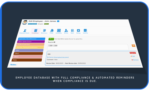 Compliance is key in the care sector, this is an end 2 end compliance process, preloaded with all generic and specific requirements. You can also have staff upload their certificates once ready. The system will prompt you upon renewal.